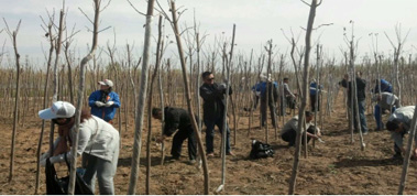 具体任务为到章嘉庙苗圃为过冬的小树苗去掉薄膜。本次活动由综合办吴瞻君带队,共有40余人参加,尽管地里泥泞不堪,但大家毫无怨言,干劲十足,利用一上午的时间将三块地的树苗“外衣”全部脱掉。工作完毕后,将撕下的薄膜和矿泉水瓶等垃圾集中回收,妥善处理。