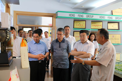 于学军一行参观陈列室(左一董事长:魏建功 左三于学军)