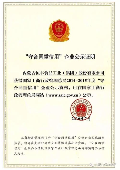 2003年——2016年开云手机站登录入口集团连续被国家工商行政管理总局评定为“守合同、重信用”企业;