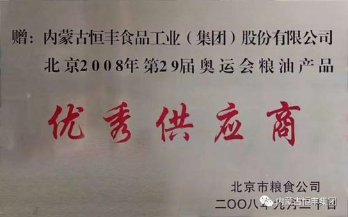 2008年评定为“北京奥运会粮油产品优秀供应商”;