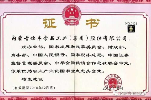 2008年被农业部认定为“国家小麦加工专业研发分中心”和“农牧业产业化国家重点龙头企业”。