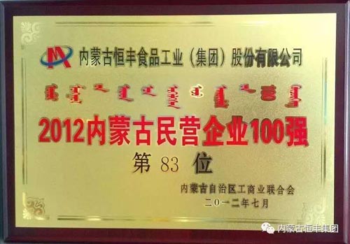 2012年自治区工商联评为“2012内蒙古民营企业100强”;