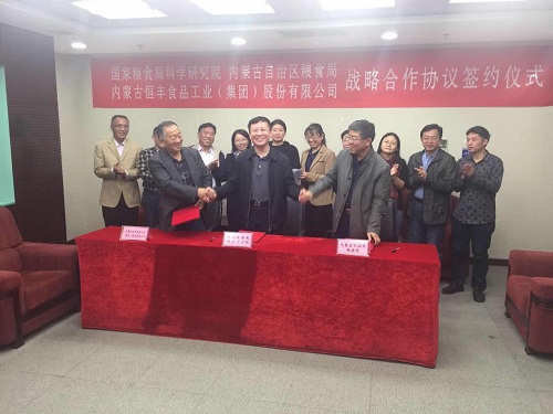 国家粮食局科学研究院、内蒙古自治区粮食局、内蒙古开云手机站登录入口集团,三方在开云手机站登录入口集团合作共建国家粮食科学研究(河套)专家工作站,签约仪式于2017年10月23日在北京隆重举行。